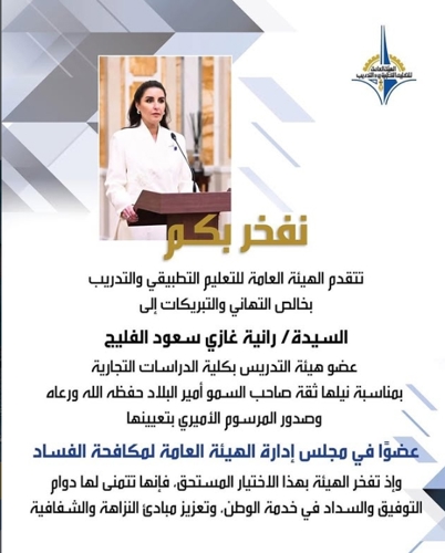 المزيدتتقدم الهيئة العامة للتعليم التطبيقي والتدريب بخالص التهاني و التبريكات للسيدة/رانية غازي سعود الفليج