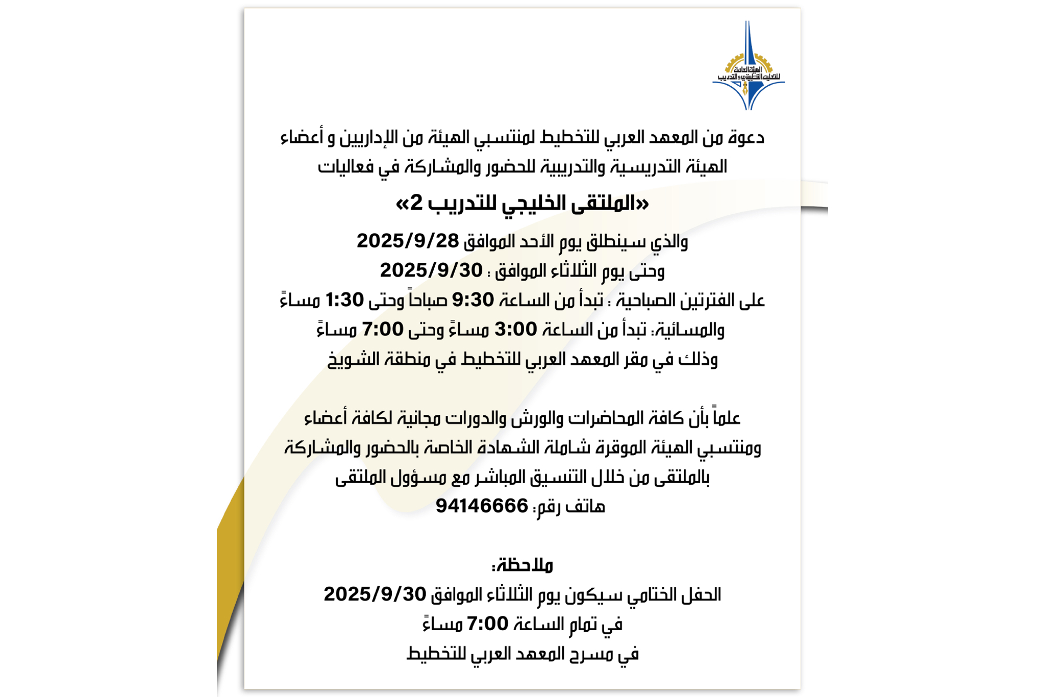 برعاية مدير عام الهيئة العامة للتعليم التطبيقي والتدريب د.حسن الفجام يدعوكم عميد كلية الدراسات التجارية د.فارس الحيان.