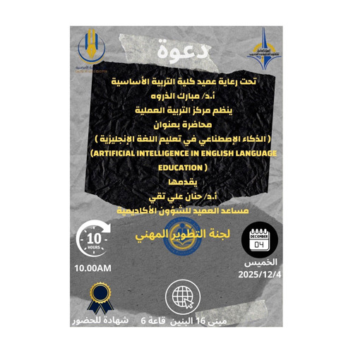 محاضرة " تمكين أعضاء هيئة التدريس والتدريب عبر استخدام أدوات الذكاء الاصطناعي "