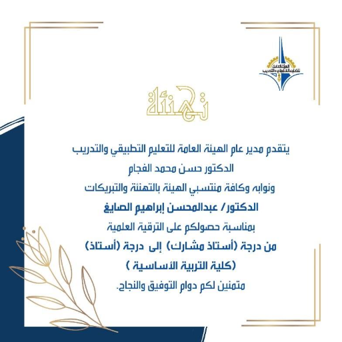والهيئة العامة للتعليم التطبيقي والتدريب لطالما عملت على تقديم دفعات متتالية من الكفاءات الوطنية بأعلى معايير الجودة التي تُساهم في دفع عجلة التنمية في البلاد لتستمر الأن بتقديم هذه النخبة من الفائقين الذين هم ثروة هذا الوطن ومن سيشكلون حجر الأساس في خطط التنمية.