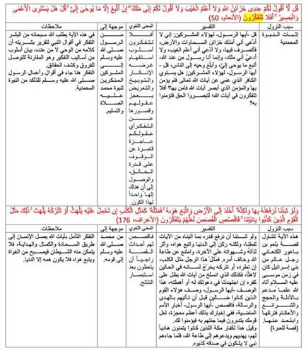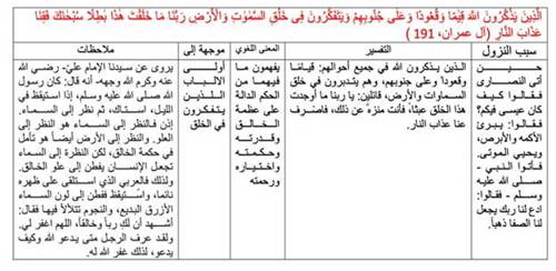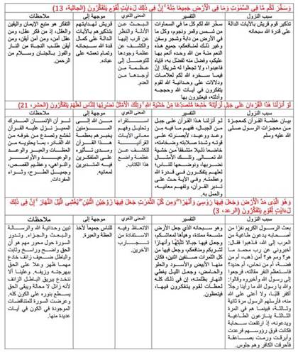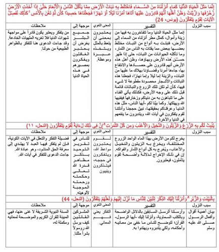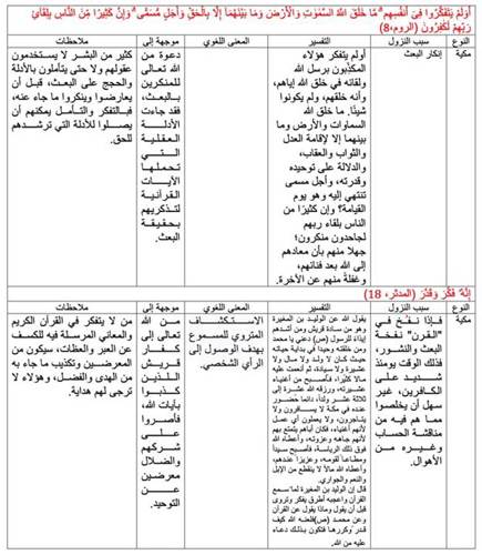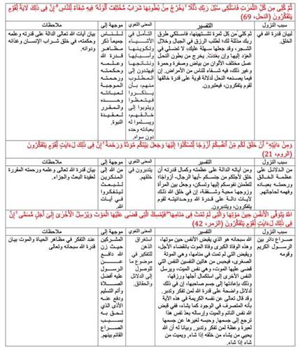 تابع جدول3 مواضع التفكير في آيات القرآن الكريم
