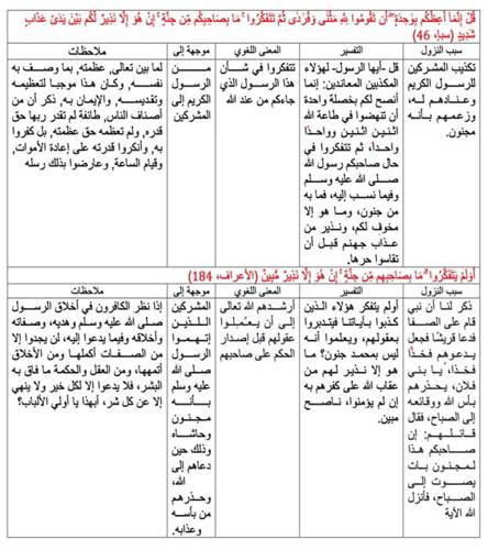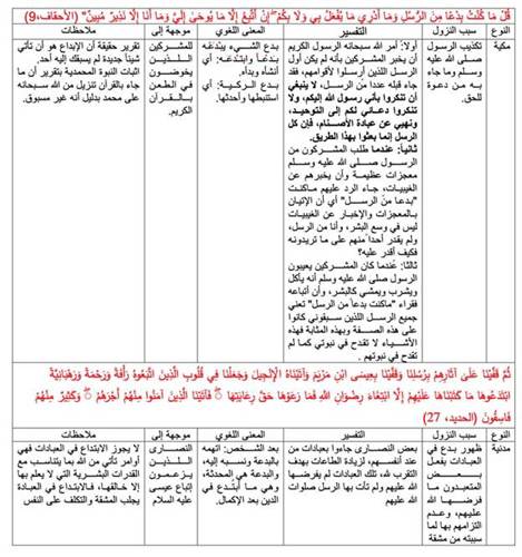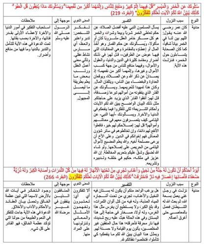 الآية – رقم السورة – نوعها (مكية، مدنية) – تفسيرها- سبب النزول- المعنى اللغوي – موجهة إلى- ملاحظات أخرى، أنظر (ملحق1).