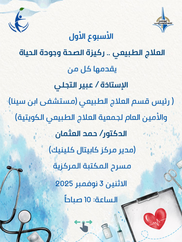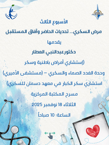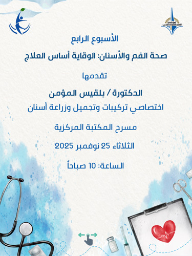 يسر لجنة الفعاليات العلمية والثقافية بالمؤتمر دعوة طالبات وطلاب كلية العلوم الصحية بالهيئة للمشاركة في المسابقات الثقافية لفعاليات المؤتمر.