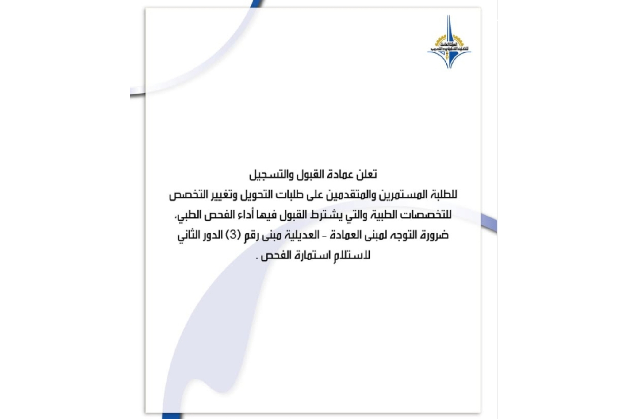 تنبيه للطلبة المستمرين و المتقدمين على طلبات التحويل و تغيير التخصص و للتخصصات الطبية