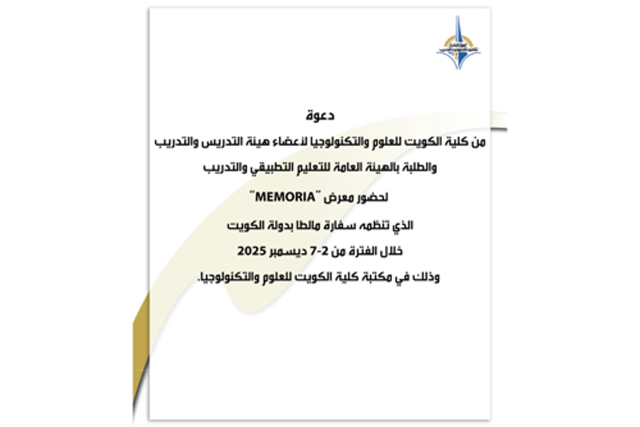 المزيدتدعو كلية الكويت للعلوم والتكنولوجيا اعضاء هيئة التدريس والتدريب